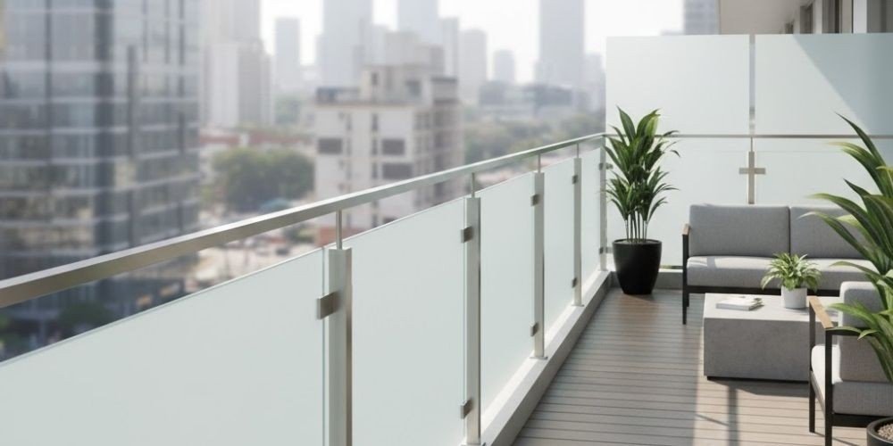 Frosted glass panels offer privacy while allowing light to filter through. They’re ideal for terraces facing neighbors or busy streets and maintain a modern, clean aesthetic that balances seclusion with brightness.